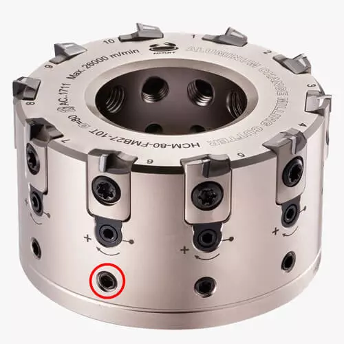 Each insert seat has an individual dynamic balance screw enabling fine tuning of tool balance without compromise. This makes it possible to reduce vibration to an absolute minimum by careful adjustment.