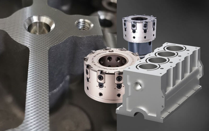 Extreme cutting accuracy and flat finishes are ideal for automotive cylinder milling. Individual adjustment of cutting inserts enables customized crosshatch patterned surface finishes if desired for perfect gasket seals.